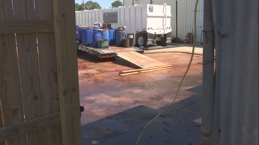 BATON ROUGE - The Louisiana Department of Environmental Quality is investigating a chemical spill at what they believe to be an old tannery on Kincaid Avenue off Choctaw Road. A red liquid spilled Monday afternoon from dozens of blue drums with ominous warning labels onto a parking lot and into a ditch and storm drain.