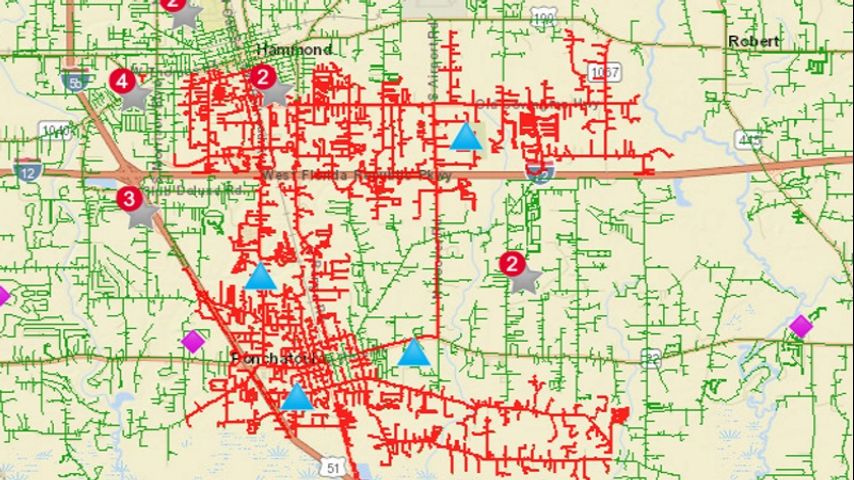 Entergy reported that more than 9,000 customers in Tangipahoa Parish were without power. The Daily Star reports that the widespread outages were caused by a lightning strike at the Ponchatoula substation Thursday morning. By 1:30 p.m. more than 230 customers were still without power.