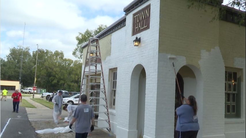 Employees and executives from TradeBe Environmental Services gave the Old Town Hall a fresh new coat of paint. Zachary Mayor David McDavid said it's important to protect historic buildings.