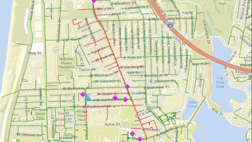 Entergy maps originally showed over 900 people without power near Higland Road near the Mississippi River.