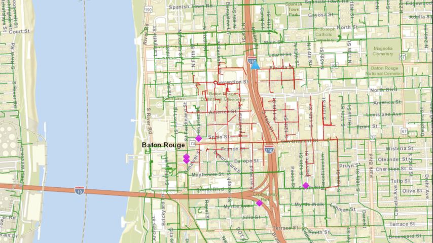 Entergy maps showed the outage near Government Street near the Mississippi River.