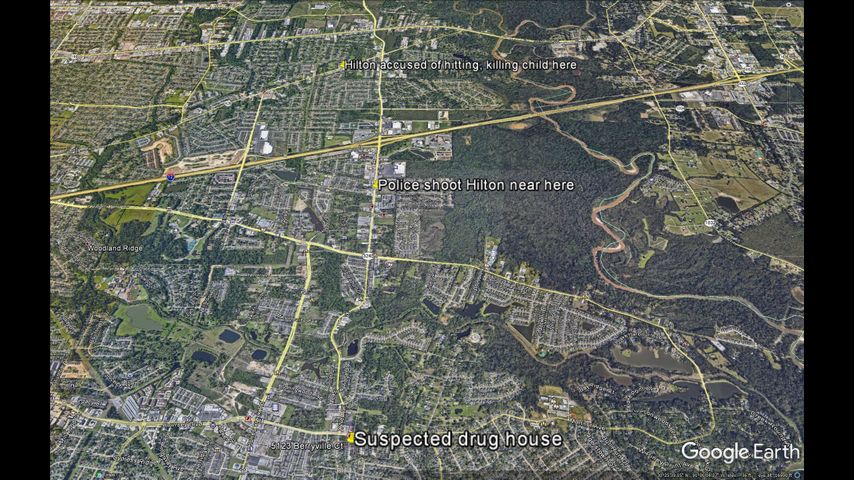 Officers in unmarked police cars followed Hilton from Berryville Court to a stoplight near the Walmart on O'Neal South of I-12. While stopped at the light, officers attempted to block Hilton into his lane, and apprehend him. As WBRZ.com first reported, Hilton attempted to drive away. His pickup drove in the direction of an officer standing nearby, so another Baton Rouge Police officer opened fire, hitting Hilton in the back as he was in the driver's seat of the truck. The officer was knocked to the hood of the truck but got off as Hilton sped up O'Neal, under the interstate and toward Old Hammond.
