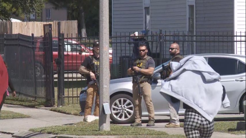 There was a heavy law enforcement presence around the property, with video showing FBI agents patrolling the area and helicopters circling to find the suspect.