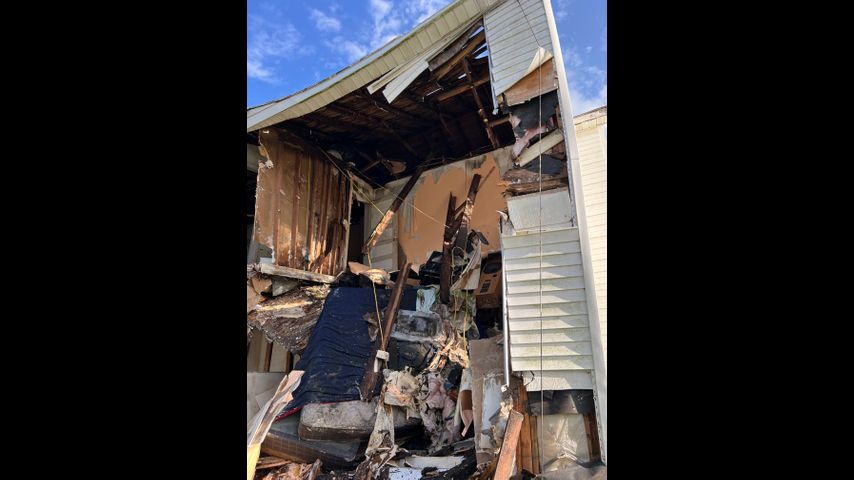 The New Orleans Fire Department said a fire alarm went off Sunday morning, prompting a response from firefighters who found a wall of the two-story home had fallen off.