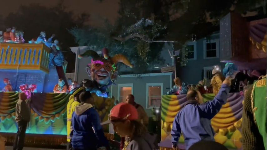 New Orleans parade float hits tree at beginning of route, delays festivities for half an hour