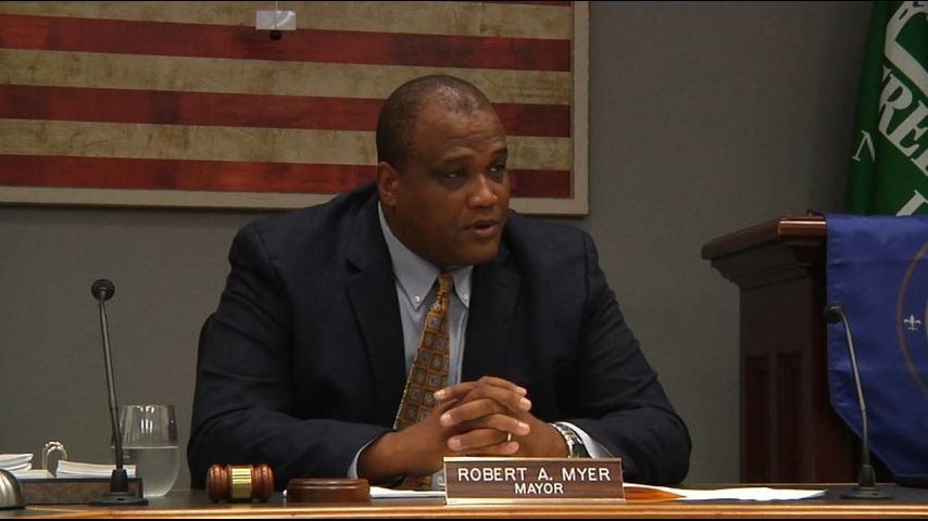 NEW ROADS - New Roads Mayor Robert Myer addressed the city council for the first since his arrest last week at a special meeting Tuesday night at city hall.