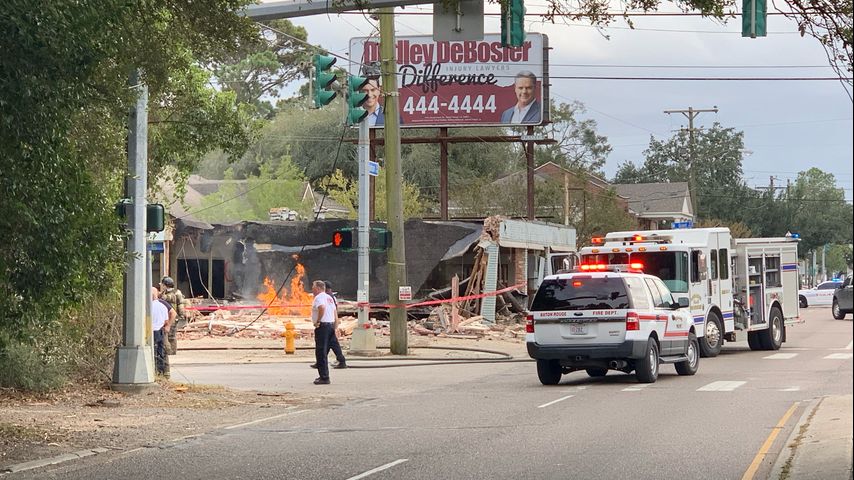 The fire department believes a brick wall collapsed at the site, causing a gas leak and fire. After being dispatched to a report of an explosion, the Baton Rouge Fire Department said the building didn't explode, but rather, the collapse of the brick wall caused the fire.