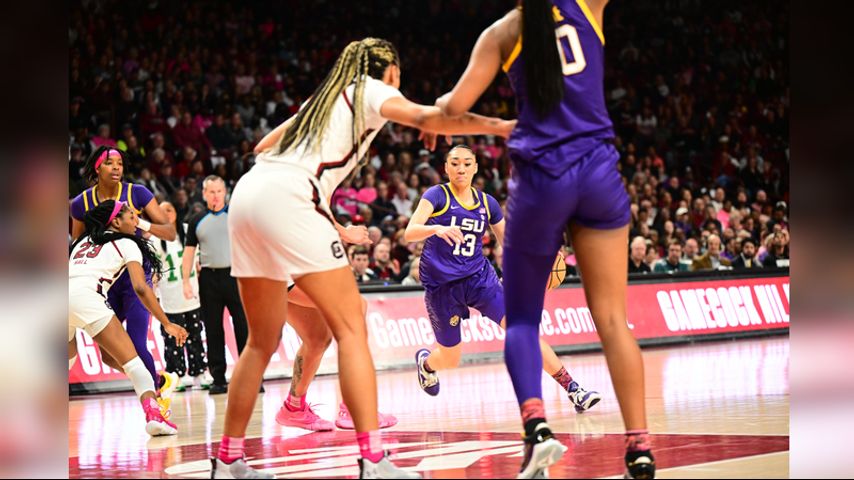 COLUMBIA, S.C. —In a matchup of the nation’s final two unbeaten teams, No. 3 LSU (23-1, 11-1 SEC) fell behind early to No. 1 South Carolina (25-0, 12-0 SEC) and the Tigers punched back, but ultimately South Carolina pulled away Sunday in a sold-out Colonial Life Arena, 88-64.