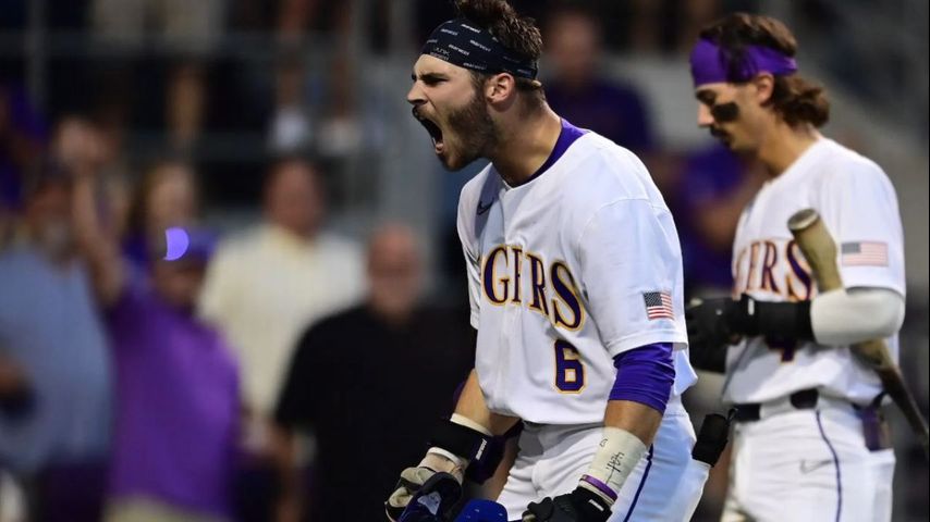 The game did not restart for another three hours, but when it did the Tigers' bats woke up. LSU hit five home runs on the night, starting with a Dylan Crews bomb in the fourth, and ending with a Brayden Jobert homer to give LSU the lead in the eighth.