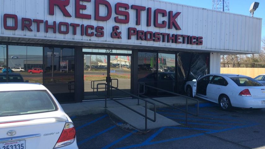 Employees of Red Stick Orthopedics said the vehicle ran into the building around 10 a.m. No injuries were reported inside.