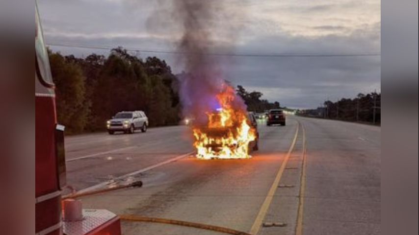 The Central Fire Department posted a picture of the burning car, saying the car had caught fire on Greenwell Springs and Magnolia Bridge roads. Local law enforcement said that the area has experienced an uptick in calls and accidents.