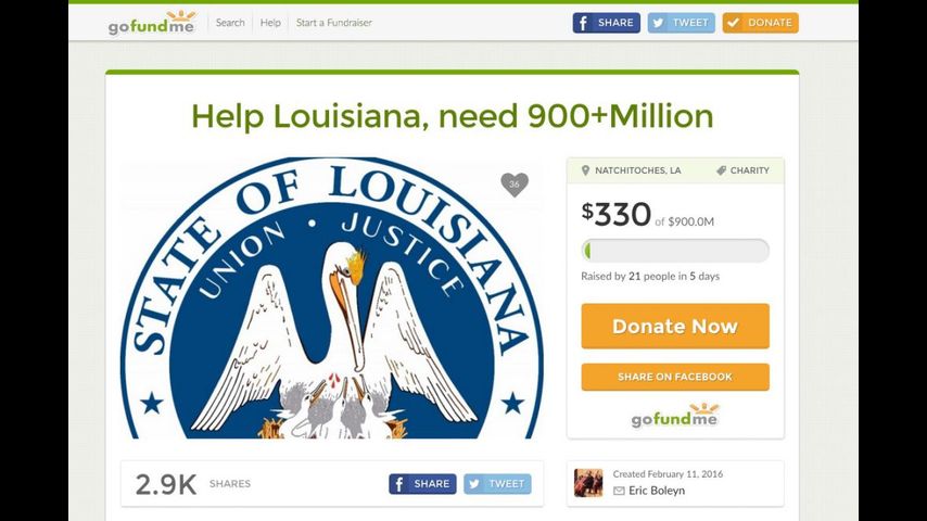 Eric Boleyn's effort to pitch in to solving the state's conundrum comes in the form of a GoFundMe page, which offers a donation platform for his campaign that he's dubbed "Help Louisiana, need 900+Million."