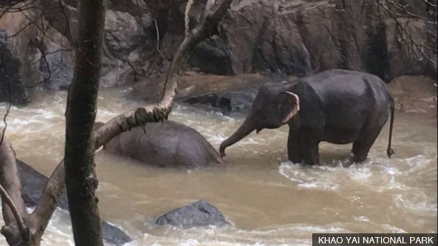 While Chansrikam's statement offers a possible motive for the elephants' actions, the local media says the reason the animals fell into the strong current is not known.