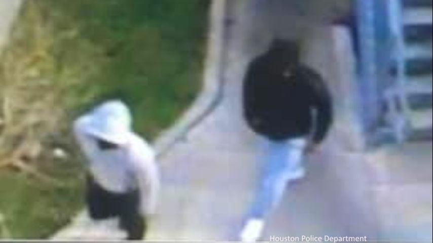 Houston police say the two suspects were in a silver/gray Nissan Altima with paper license plates. They're combing the area for the two men; authorities say one was wearing a black hoodie with black pants and the other was clad in a white hoodie with black pants.