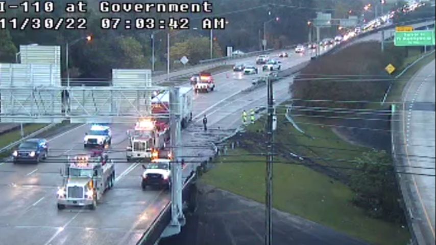 18-wheeler crashed through barricade, blocked I-110 for hours Wednesday morning