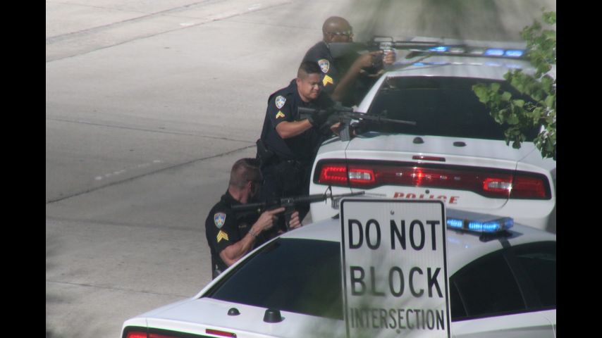Dispatch audio records what happened next as officers were reported down when a man at the scene opened fire, shooting “indiscriminately,” according to a witness at the scene. Several officers were hit and a massive manhunt began in the area as authorities searched for suspects that were described as wearing all black or camouflage clothing.