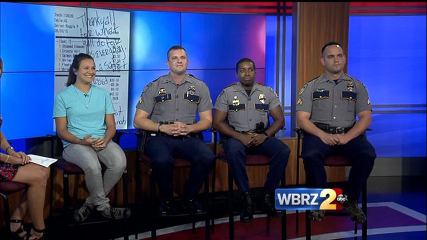 BATON ROUGE - Three police officers who were gifted a free lunch got to publicly thank the waitress who paid their bill Friday.