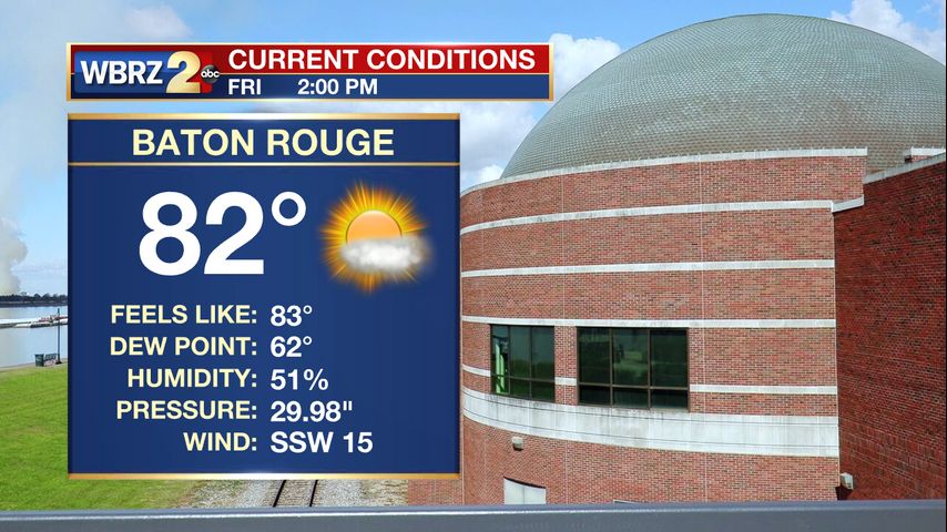 Get right now weather conditions for your location on the WBRZ WX App on your Apple or Android device. Follow WBRZ Weather on Facebook and Twitter for even more weather updates and unique weather insight from the whole team!