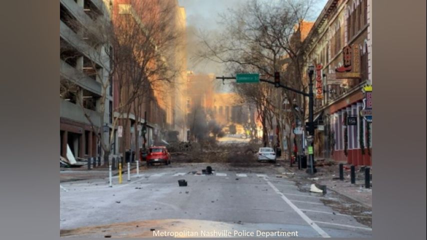 Local news outlets say the explosion occurred in the area of Second Avenue and Broadway near Commerce Street around 6:30 a.m., Dec. 25.