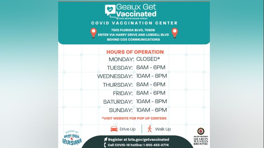 BATON ROUGE - East Baton Rouge Parish officials are partnering with state leaders for the Thursday, April 15 launch of a federal COVID-19 Community Vaccination Center in Baton Rouge.