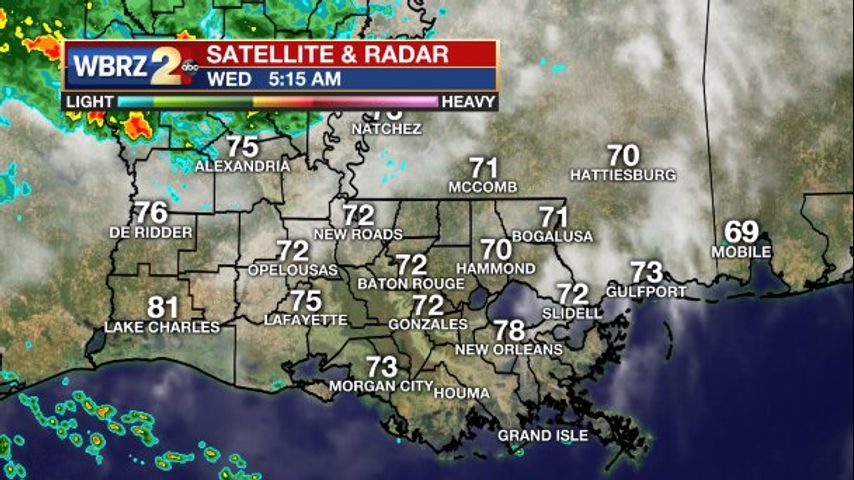Today's showers will likely remain south of the Baton Rouge area today. Overnight lows will return to the mid 70s, indicative of the higher humidity expected. The cold front that brought us slightly drier conditions will betray us and move back toward the north as a disturbance. This will increase showers and thunderstorms over the next several days. The good news is that the rain and clouds will help keep the temperatures out of the 90s.