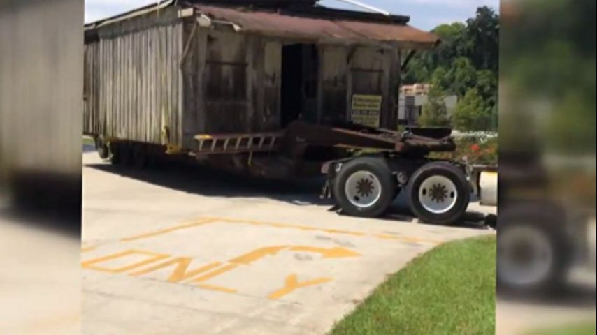 The store was hauled in on a flatbed truck from the Sunshine area in St. Gabriel where it has stood since the 1920s.