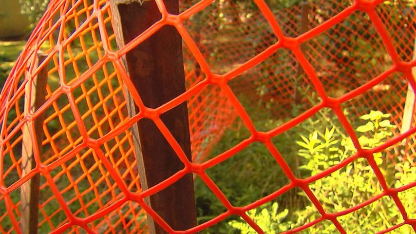 The Department of Public Works has visited her home on and off for years. This past January, DPW put orange fencing around an area of her yard that's sinking and it's been there ever since. A pole stuck in the ground shows the hole sinks at least two feet below the surface. Griffin says it's much deeper than that.