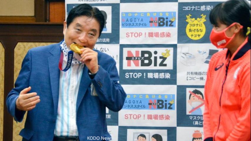 NAGOYA, Japan - When the mayor of Nagoya, Japan removed his mask and bit softball pitcher Miu Goto's Olympic gold medal, he likely had no idea of the firestorm his actions would cause.