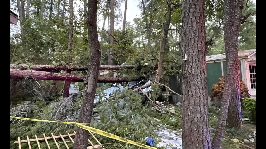 HARRIS COUNTY, Texas - A man is dead after the plane he was on with two others crashed into a mobile home community.