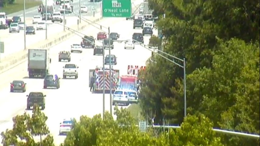 The right lane of the interstate is currently blocked at the scene of the crash.