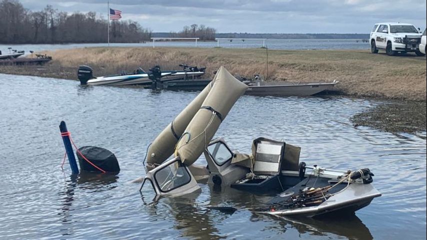 The fishermen's boat was located shortly after daylight on Monday, March 14, sitting on the bottom of the lake.