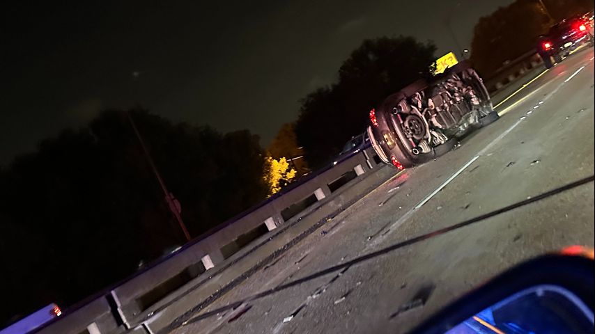 BATON ROUGE — The left lane is blocked on I-110 North near Mohican Street due to a flipped vehicle.