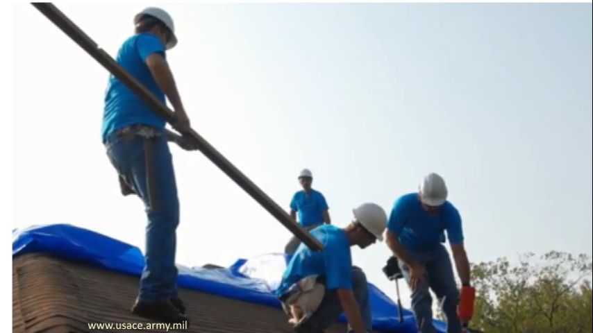 Operation Blue Roof, a relief effort helmed by the U.S. Army Corps of Engineers for FEMA, aims to provide homeowners in disaster areas with fiber-reinforced sheeting to cover their damaged roofs until permanent repairs are made.