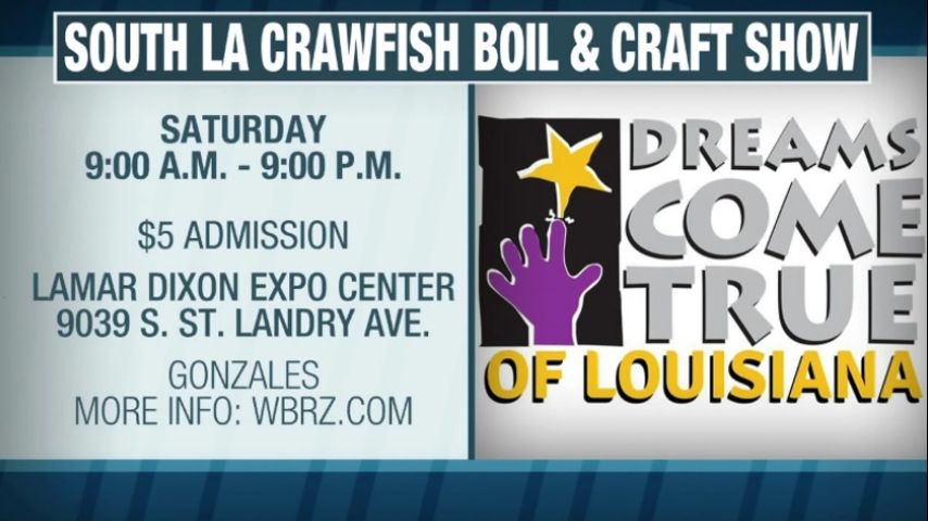 Dreams Come True of Louisiana will be hosting a crawfish boil, craft, and car show this weekend. The event will run from 9 a.m. to 9 p.m. at the Lamar Dixon Expo Center Saturday. Admission is $5.