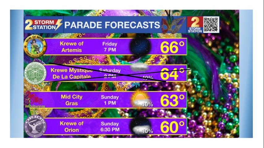 In a statement to WBRZ, organizers said the parade did not have the option of rescheduling for later in the Carnival season.