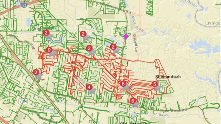 Outage maps show almost 5,000 people without power in East Baton Rouge