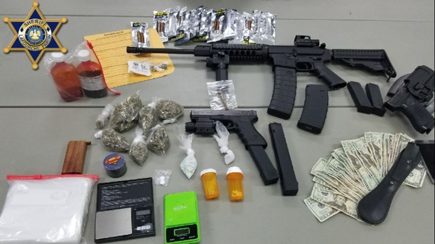 LAFOURCHE- Authorities seized several illegal drugs and firearms from inside a vehicle during a traffic stop Monday.