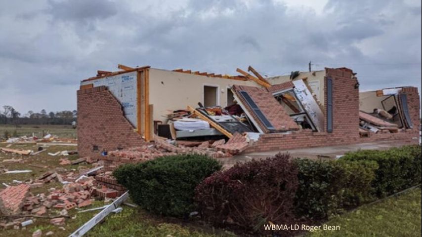 In southwestern Alabama, officials say two people were injured as their home was destroyed by the storm.