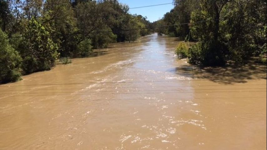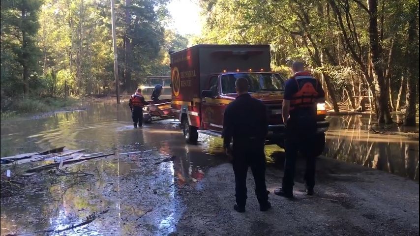 Authorities say this past weekend's heavy rainfall caused the river to overflow and spill onto Frenchtown Road Tuesday morning. The Central Fire Department used a boat to rescue a citizen who got stuck in the flood waters.