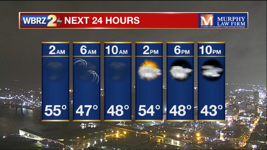 Up Next: Thursday will be sunny and chilly with highs in the mid 50s. Friday morning will have the coldest temperature of the 7-Day Forecast with many lows close to freezing, especially north of Baton Rouge. The afternoon will make it into the upper 50s with plenty of sun. Saturday is expected to stay dry but clouds will increase as rain showers are set to return for the second half of the weekend. Click here to see the 7-day forecast.