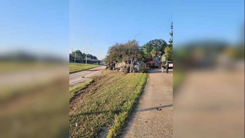 Overturned 18-wheeler carrying sodium hydroxide causes N 9th Street to be blocked