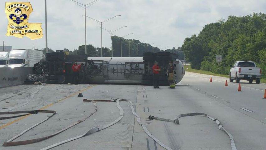 BATON ROUGE - All lanes of I-10 have reopened after an overturned tanker truck closed I-10 East past Siegen Lane and closed at the I-10/12 split on Friday morning.