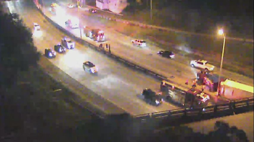 Overturned 18-wheeler on I-110 South near Memorial Stadium blocks traffic