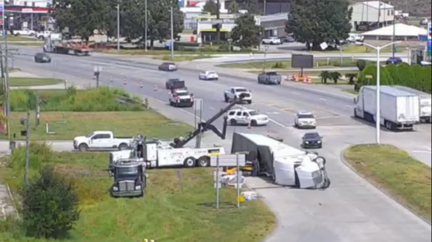 Overturned 18-wheeler on Lobdell Highway leaves all but one lane closed going southbound
