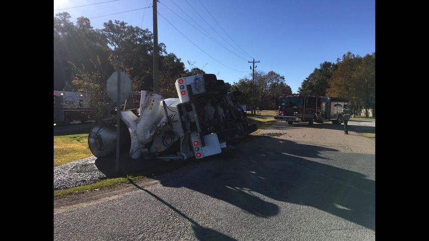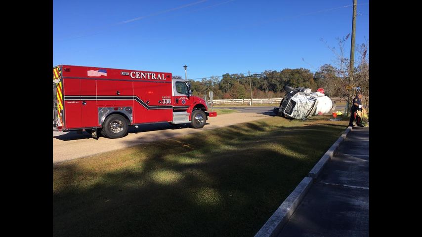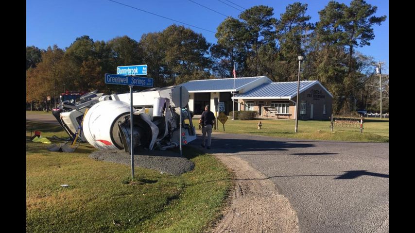 The Central Fire Department responded to reports of a crash on Greenwell Springs Road near Donnybrook sometime before 9:30 a.m. There, firefighters found an overturned cement truck, with its load spilling into a nearby ditch.