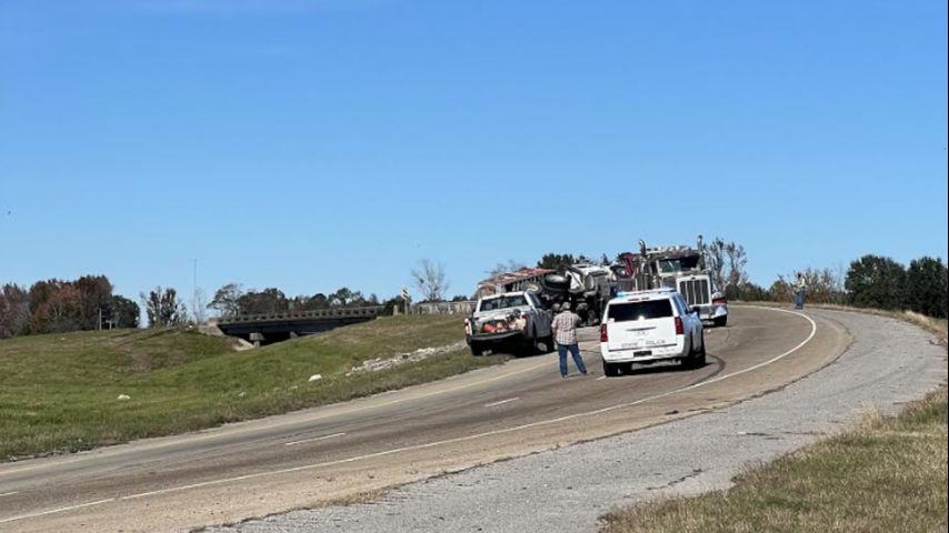 Overturned dump truck closes U.S. 61 near Old Scenic Highway