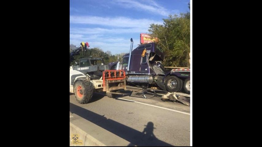 The crash involved an 18-wheeler hauling lumber, which spilled its load at Mile Marker 116 in Henderson. The crash was not fatal.