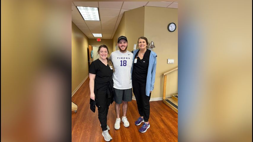MORGANZA - An Acadian Ambulance worker walked out of the hospital Friday after surviving a deadly wreck in Pointe Coupee Parish back in July, which forced him to relearn how to walk.