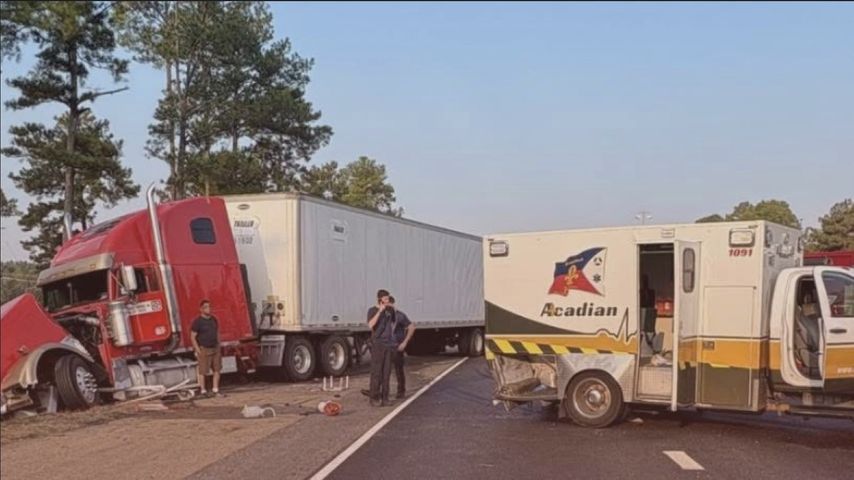 WALKER - Traffic backed up Wednesday morning on I-12 eastbound after an 18-wheeler hit an Acadian ambulance as medics responded to a call on the road shoulder.