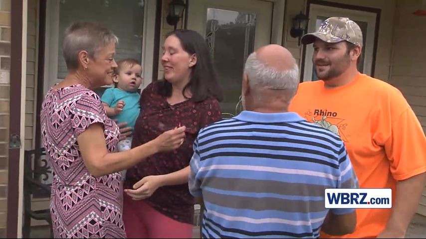 DENHAM SPRINGS - On the Anniversary of the August flood, two parents were reunited with the couple they credit with saving their 4-week-old baby.